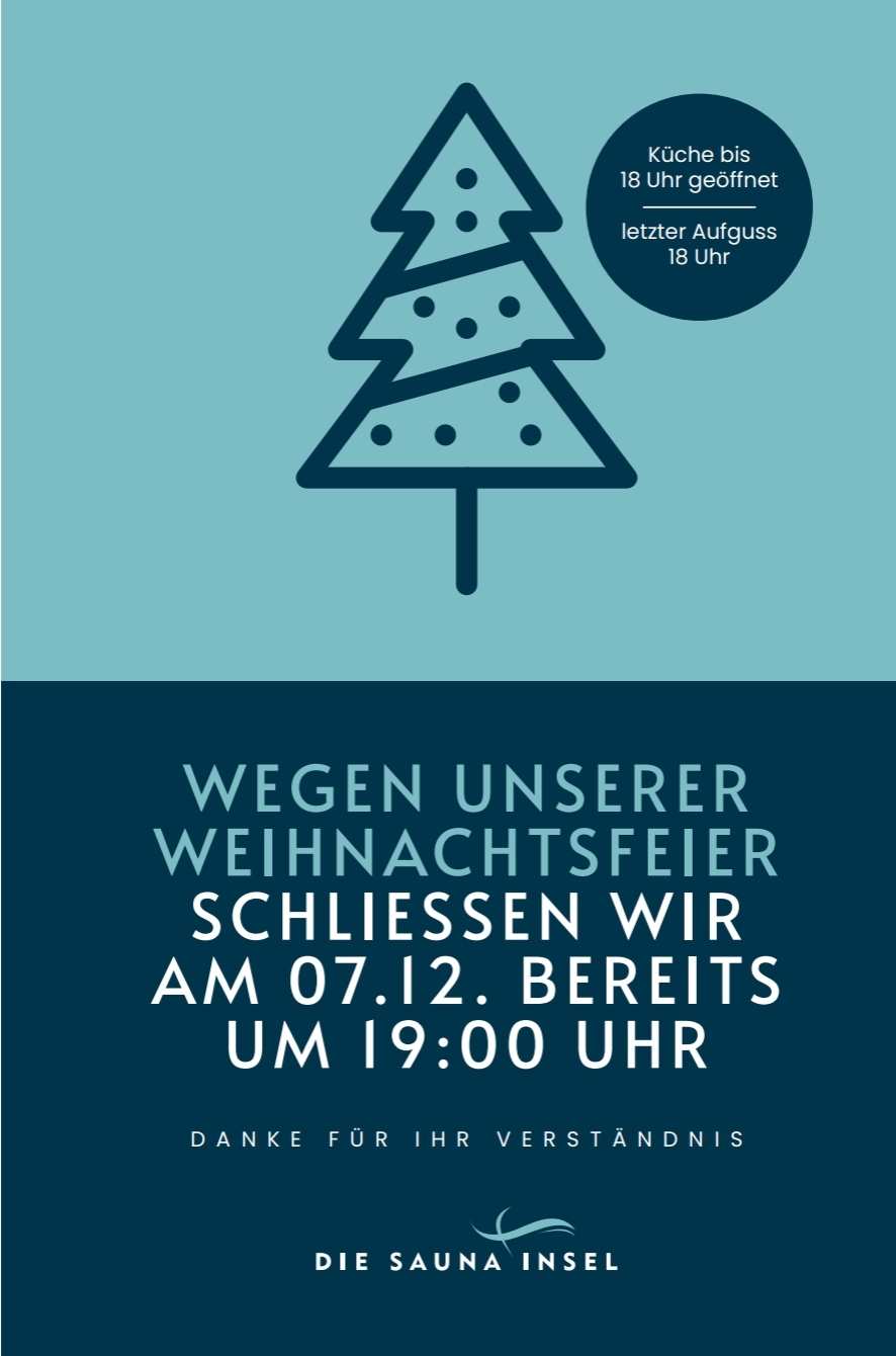 Am Sonntag, 07.12.25 schließen wir bereits um 19:00 Uhr aufgrund unserer internen Weihnachtsfeier.